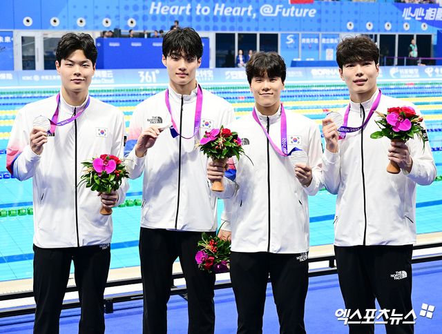 한국은 28일 중국 항저우에 위치한 항저우 올림픽 스포츠센터 수영장(Hangzhou Olympic Sports Centre aquastic sports arena)에서 열린 2022 항저우 아시안게임 수영 남자 계영 400m 결승에서 3분12초96의 한국 신기록을 작성하고 은메달을 수확했다.
