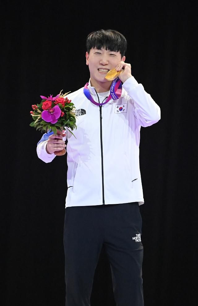 在击剑项目上,男子团体佩剑决赛中,由吴尚旭、金准镐、具本佶、金政焕组成的韩国“梦之队”以45比33战胜中国队,获得金牌。至此,亚运会男子团体佩剑赛中,韩国队继2014年仁川、2018年雅加达之后,实现了三连冠。