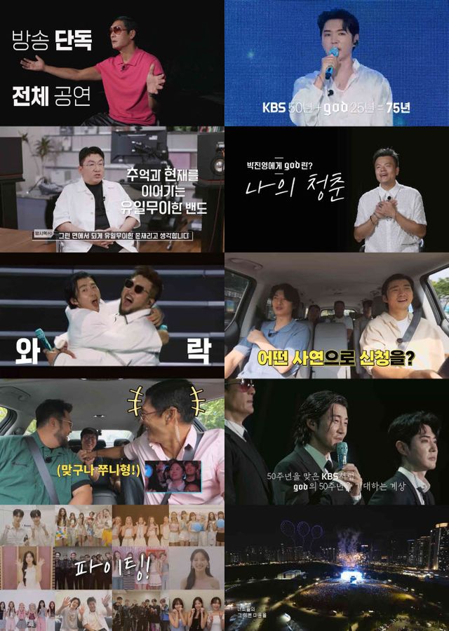 [이데일리 스타in 김보영 기자] KBS 50주년과 god 25주년을 기념하는 초대형 프로젝트. KBS 50년×god 25년 2023 KBS 대기획 ‘ㅇㅁㄷ지오디’가 방송 최초로 ‘국민아이돌’ god의 풀 콘서트를 중계했다. 관객과 함께 호흡한 god 멤버들은 ‘god택시’ 등으로 여러 사연을 소개하며 한 걸음 더 가깝게 다가섰다. 또, 방시혁과 박진영, 아이돌 후배들의 응원영상까지 공개돼 훈훈함을 더했다. 이날 방송은 분당 최고 시청률 4.9%(닐슨코리아 기준)로 치솟으며 연휴 첫날 안방 1열을 열기로 불태웠다.