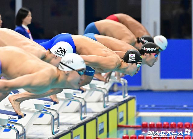 김우민이 13년 만에 이 종목 아시안게임 금메달을 한국에 안기기 위한 첫 스타트를 순조롭게 끊었다. 2014년 인천 대회와 2018년 자카르타-팔렘방 대회에선 중국 수영 스타 쑨양이 연속 우승했다.