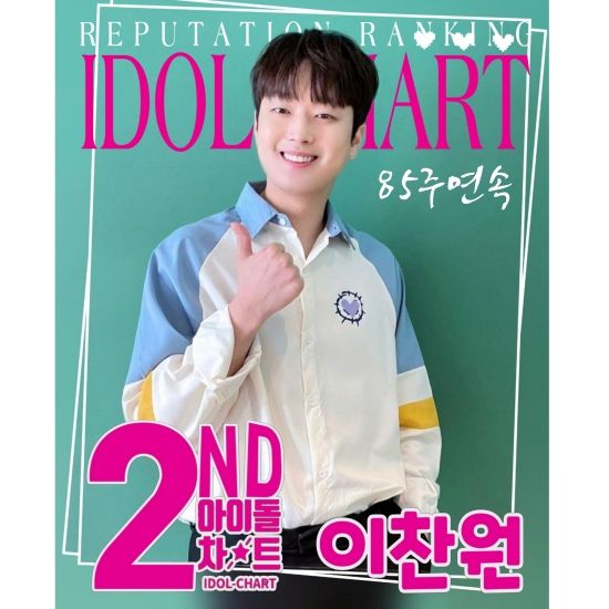 이번 랭킹에서 이찬원은 232,620표를 받으며 '85주 연속' 2위를 달성했다.
