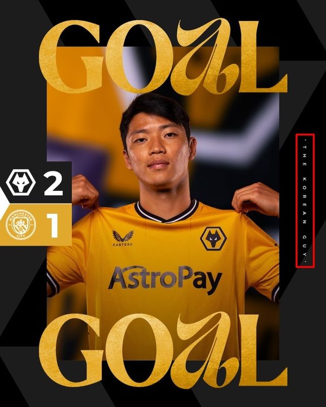 보통 구단들은 소속팀 선수가 골을 넣었을 때 득점 그래픽을 SNS에 게시한다. 황희찬의 득점이 나왔을 때 특이점을 발견할 수 있었다. 울버햄튼은 원래 선수 사진과 함께 우측에 선수 이름을 작성한다. 그런데 ‘HWANG’이 아닌 ‘THE KOREAN GUY’라고 적혀있었다.