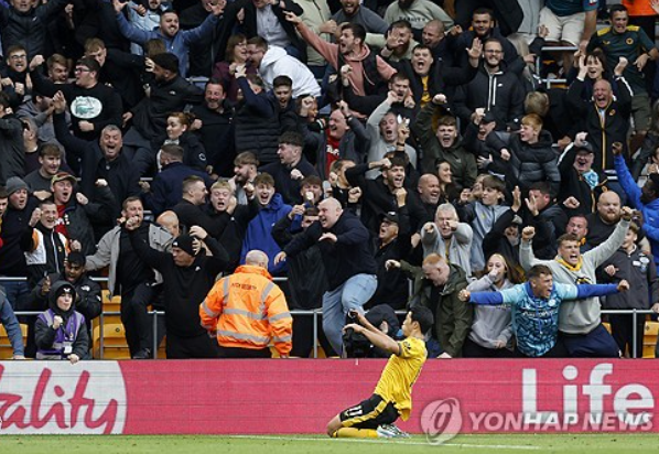 하지만 10분 뒤 울버햄프턴이 다시 한 골을 넣어 대어를 잡았고 그 주인공이 황희찬이었다.