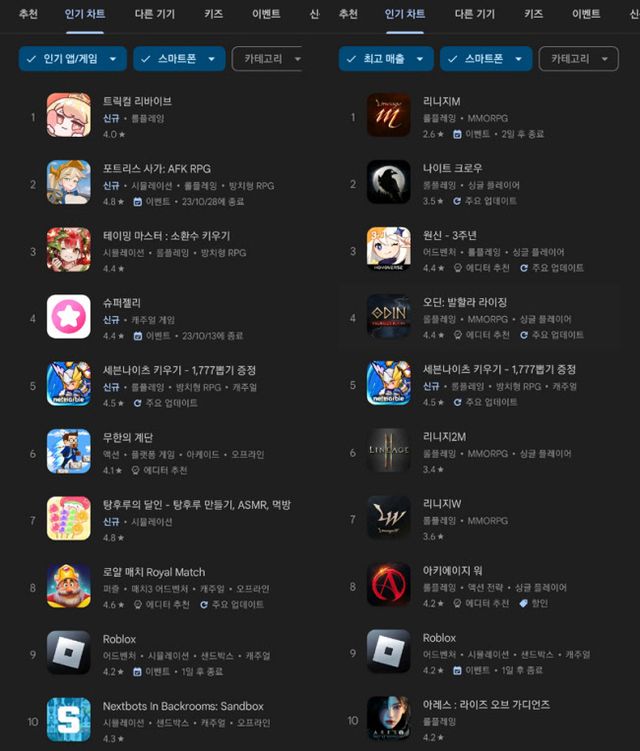 주간 순위는 모바일 게임 구글 플레이 기준 순위를 통해 1주간 어떤 게임들이 유저들의 주목을 받았는지 살펴보는 코너다.