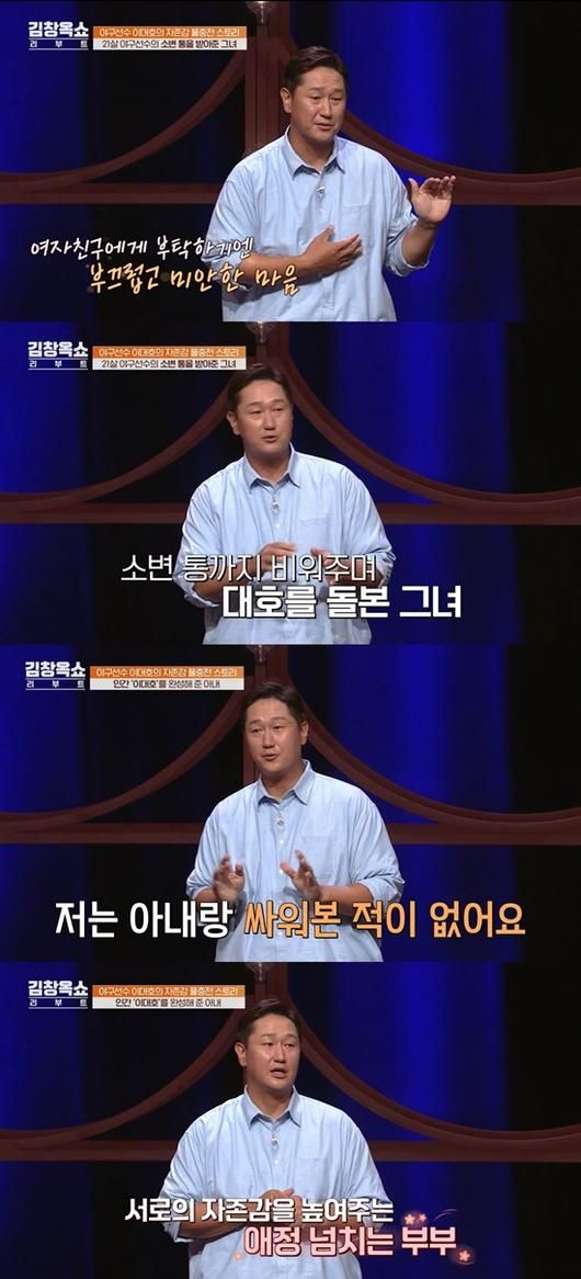 1일 방송된 tvN '김창옥쇼 리부트'에서 이대호는 "아내와 한 번도 싸운 적이 없다. 아내를 이겨서 뭐하겠나"라며 아내와의 굳건한 애정을 표현했다.
