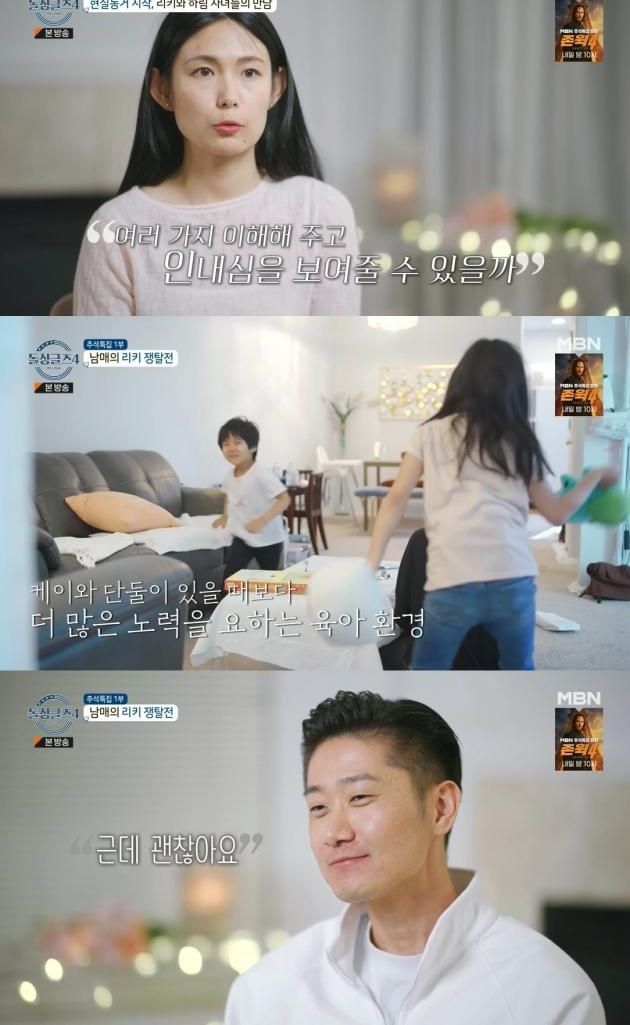 리키는 "(아들) 케이하고 있으면 케이에게만 신경 쓰면 되는데, 애들이 세 명 있으니까 신경을 더 써야 하고, 서로 같이 노는 것도 신경 쓰고 안 싸우게 얌전하게 노는 것도 신경 써야 하고 피곤하다"라면서도 "근데 괜찮다"라고 담담하게 말했다. 저녁을 먹은 뒤 리키는 하림의 하루치 설거지를 대신 했는데, 오랜 시간이 걸렸고 그 사이 막내가 깨서 울었다. 리키는 설거지를 끝내지 못했고, 하림은 "그냥 대충대충 하자"라고 했다. 이후 하림은 "저는 하나를 해치우는 것에 만족감을 느끼는 상태인데 리키는 아직 여유로운 거다"라고 털어놓기도 했다.