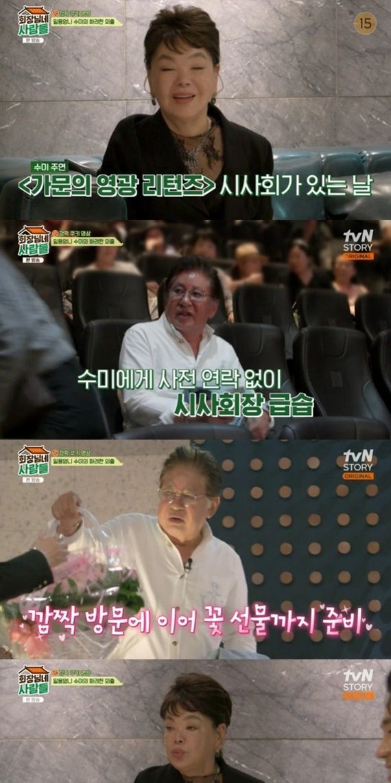 2일 오후 방송된 tvN STORY 예능프로그램 '회장님네 사람들'에서는 김수미 주연의 '가문의 영광: 리턴즈' 시사회장을 찾은 김용건의 모습이 담겼다.