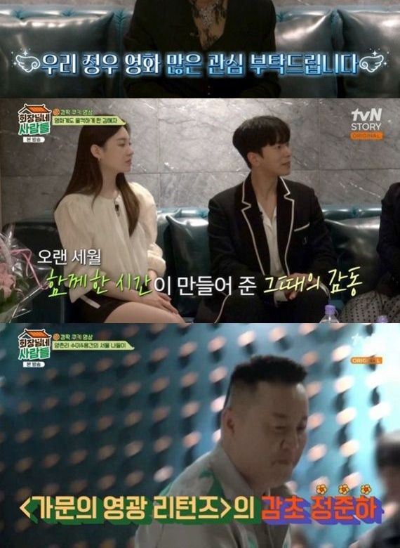 이어 배우 윤현민, 유라, 고윤부터 정준하까지 '가문의 영광: 리턴즈'에 출연한 배우들이 총출동해 김용건과 인사를 나누며 훈훈함을 더했다.