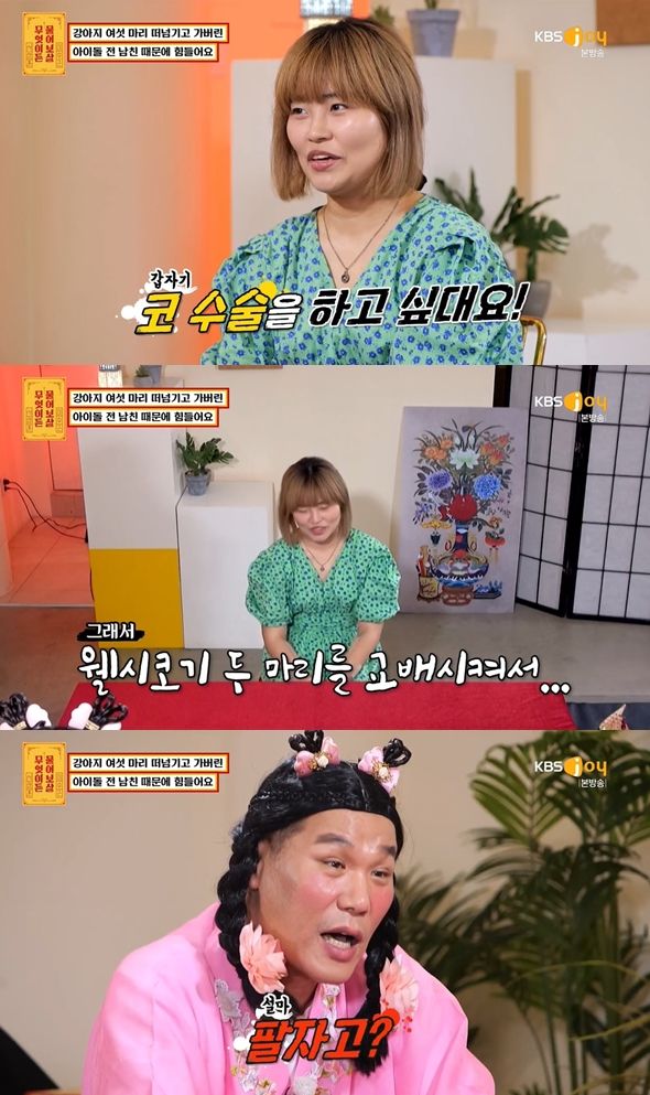 사연자는 "남자친구가 코 수술을 하고 싶다더라"며 "그래서 '강아지 두 마리를 교배시켜서 팔자'"더라고 전했다. 그래서 새끼 강아지가 두 마리 늘었지만, 팔지 못해 총 여섯 마리를 키우게 됐다고 밝혔다.