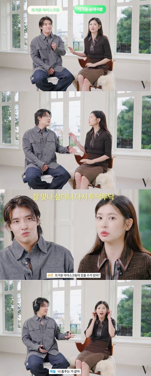 두 사람은 우정테스트로 진행한 밸런스게임에서 3가지를 연속해서 같이 대답해 찰떡 호흡을 보이다가 '뜨거운 아이스크림'과 '차가운 순대국밥'을 다르게 선택하고서는 "차가운 순대국밥을 어떻게 먹어", "뜨거운 아이스크림은 물리적으로 말이 안 되잖아"라고 투닥거리는 모습을 보여주며 웃음을 자아냈다.