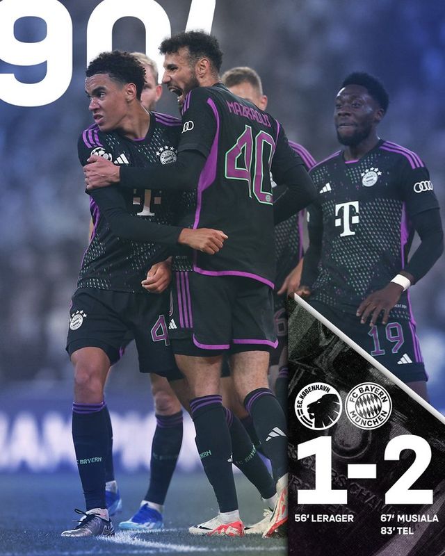 바이에른 뮌헨은 4일 오전 4시(한국시간) 덴마크 코펜하겐에 위치한 파르켄에서 열린 코펜하겐과의 2023-24시즌 유럽축구연맹(UEFA) 챔피언스리그(UCL) 조별리그 A조 2차전에서 2-1 역전승을 거뒀다. 이번 승리로 뮌헨은 승점 6점이 되면서 조 1위를 질주했다.