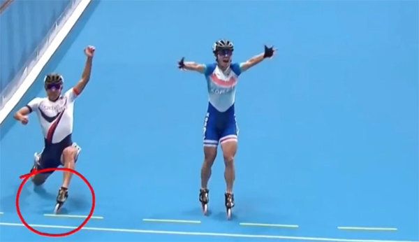 마지막 주자 정철원은 승리를 예감한 듯 결승선을 통과하기 직전 허리를 펴고 두 팔을 번쩍 들어 올리며 때 이른 세리머니에 나섰다. 그때 뒤에 있던 대만 선수가 끝까지 포기하지 않고 왼발을 쭉 내밀며 정철원보다 먼저 결승선을 통과했다.
