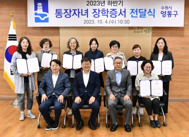 | ▲ 수원시 영통구, 2023년 하반기 통장자녀 장학금 전달 |