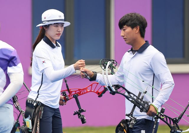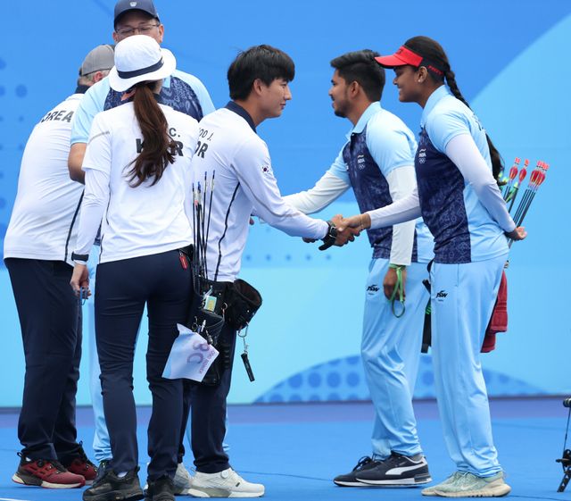 컴파운드 혼성전은 남녀 선수가 라운드마다 2발씩 쏘며 총 4엔드에 걸쳐 진행된다. 팀당 만점이 160점인 셈이다. 한국은 1엔드에서 39점, 2엔드에서 40점을 기록했는데 인도가 1~2엔드 모두 40점 만점을 받아 한 점 뒤진 채 3~4엔드를 맞게 됐다.