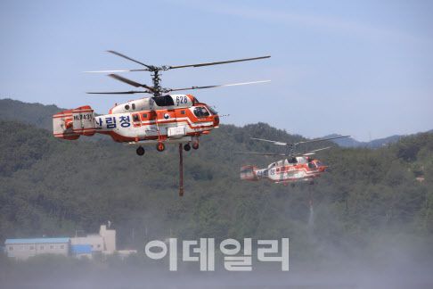 [대전=이데일리 박진환 기자] 산불진화헬기의 기체결함과 노후화 등으로 우리나라 산불진화 체계가 위기에 직면했다. 국회 농림축산식품해양수산위원회 소속 더불어민주당 신정훈 의원(전남 나주·화순)이 산림청으로부터 제출받은 자료에 따르면 최근 산불피해가 가장 컸던 지난해의 산림헬기 가동률은 66.8%에 그쳤다. 지난해 산림헬기 총 48대 중 3대(러시아산 KA-32 기종)는 10년 점검 기간으로 산불 진화에 투입될 수 없었고, 26대도 기체 결함으로 수시로 작전 수행이 불가능한 상태였던 것으로 조사됐다.