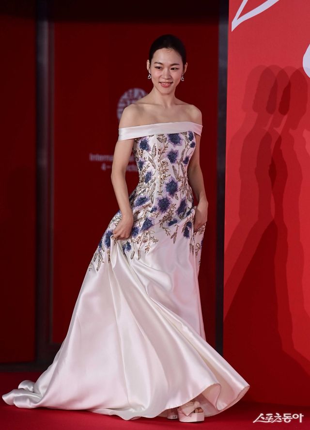 배우 한예리가 4일 부산 해운대 영화의전당에서 열린 제28회 부산국제영화제 레드카펫에서 오프 숄더의 화이트 드레스를 입고 환하게 웃고 있다. 해운대(부산) | 주현희 기자 teth1147@donga.com
