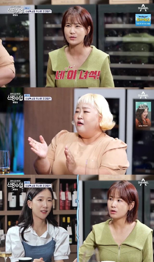 4일 방송된 채널A ‘요즘 남자 라이프-신랑수업(이하 ‘신랑수업’)’에서 김지민과 박소영, 홍윤화는 신성과 함께 저녁 식사를 하며 티키타카를 뽐냈다.