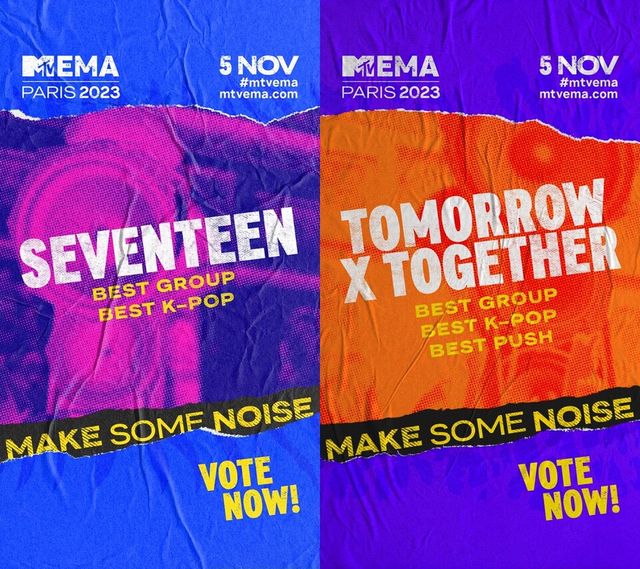 그룹 세븐틴과 투모로우바이투게더, 에스파, 뉴진스 등이 ‘2023 MTV EMA’ 베스트 그룹 부문에 노미네이트 됐다.