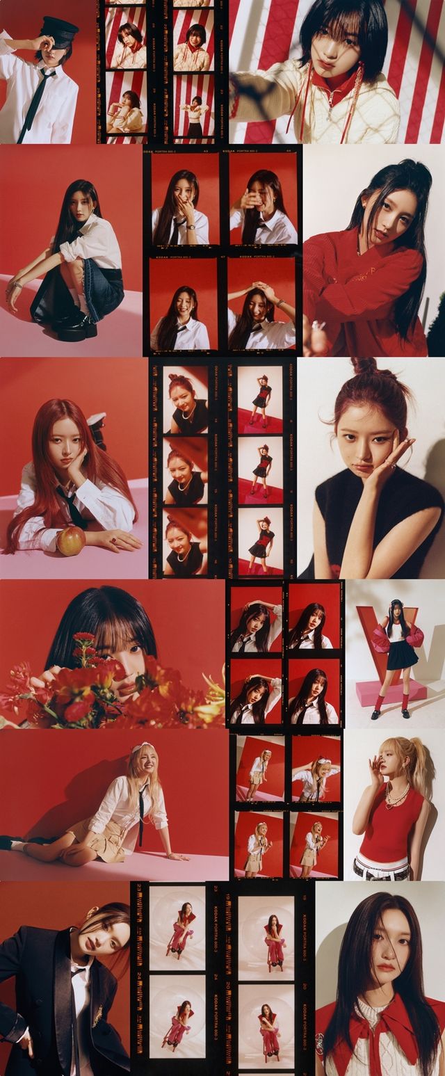 또 다른 사진에서는 레드를 포인트로 각자만의 개성을 드러낸 의상을 착장한 멤버들이 시크한 표정을 짓고 있다. 맑은 이미지를 선사한 앞선 포토와는 또 다른 매력으로 이목을 집중시킨다.