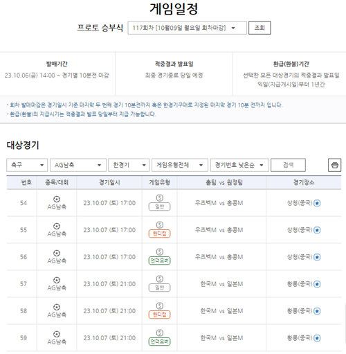 한편 프로토 승부식 117회차에선 항저우아시안게임 남자축구 결승전 외에 7일(토) 오후 5시 펼쳐지는 동메달 결정전인 우즈벡-홍콩(54, 55, 56번)전을 통해서도 참여가 가능하다. 이와 관련된 자세한 경기 분석 내용 등은 공식 온라인 발매 사이트 베트맨 내 토토가이드 페이지에서 확인할 수 있다.