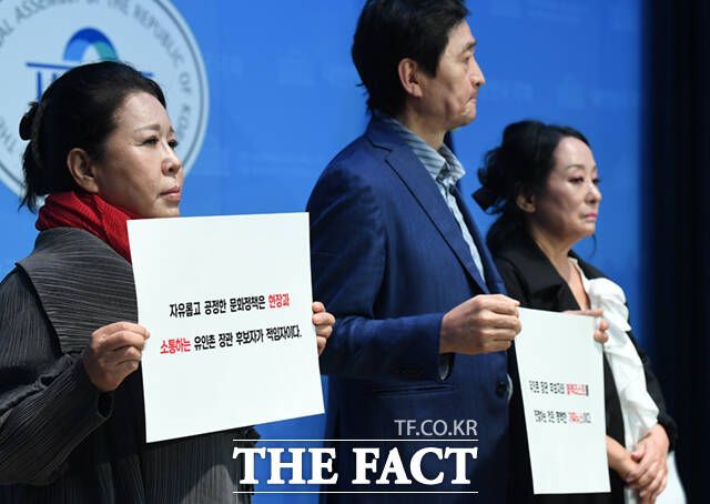 보수 성향의 문화단체 및 예술인 946개 단체 회원들은 이날 오전 10시 국회 소통관에서 "유인촌 문체부 장관 후보자를 지지한다"며 "유 후보자가 문체부 장관 재임시 보여준 뛰어난 성과와 함께, 현장에서 소통하고 급변하는 시대변화를 선도할 정책 추진을 기대한다"고 밝혔다.