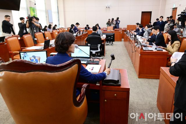 아시아투데이 이병화 기자 = 권인숙 국회 여성가족위원장이 6일 국회에서 김행 여성가족부 장관 후보자 인사청문회를 재개하고 있다. 국민의힘은 이날 야당 주도로 하루 더 연장한 인사청문회에 후보자와 의원들은 참석하지 않겠다고 밝혔다.