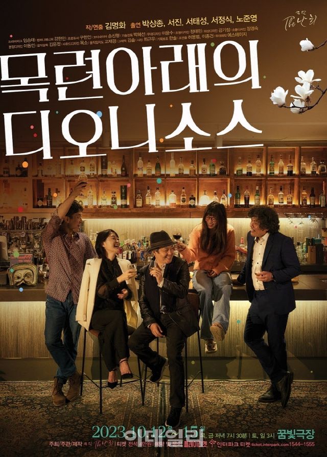젊은 연극인들이 운영하는 디오니소스라는 이름의 작은 카페 겸 바. 이곳에 모인 사람들은 디오니소스 신화와 관련된 별명으로 서로를 부른다. 아직 겨울의 기미가 가시지 않은 봄날, 장사가 잘되지 않는 디오니소스로 저마다의 상처를 가진 손님들이 한 명씩 찾아온다. 손님들은 한 잔씩 술을 마시면서 취해가고, 담소를 나누고, 연극을 구경하다 승강이를 벌이고, 때론 자신을 파괴하려는 격렬한 격정에 휩싸이기도 한다. 이들은 과연 디오니소스 신의 위로를 받을 수 있을까. 2019년 초연 당시 평범한 현대인의 일상과 신화 세계를 위트 있게 연결해 호평 받은 극작가 겸 연출가 김명화의 작품. 배우 박상종, 서진, 서태성, 서정식, 노준영 등이 출연한다.
