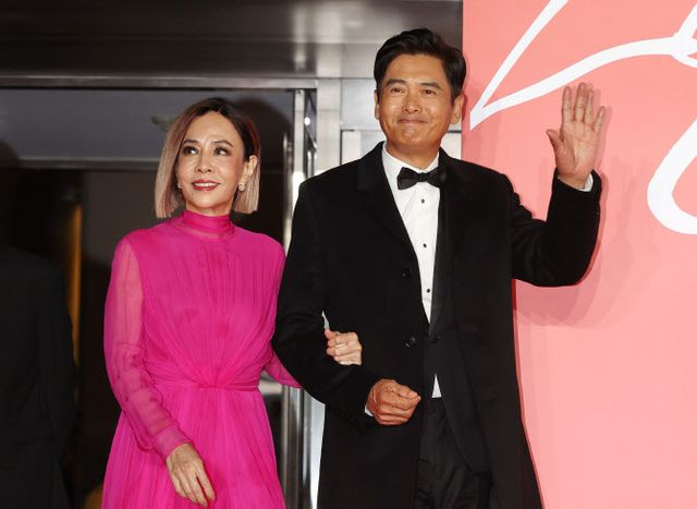 레드카펫을 밟기 전 주윤발은 차에서 먼저 내려 함께 한국을 찾은 부인 재스민 탄을 에스코트하며 관객들에게 여유롭게 손을 흔들어주며 인사했습니다.