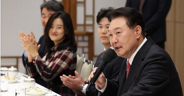 윤석열 대통령이 6일 서울 용산 대통령실 청사에서 열린 교권 보호 4법 계기 현장 교원과의 대화에서 격려의 발언을 하자 참석 교사들이 박수치고 있다. / 연합뉴스