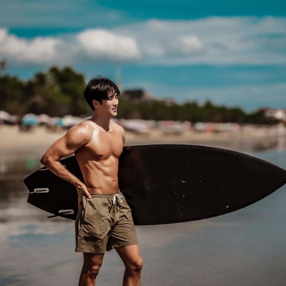 공개된 사진에는 해변가서 상의를 탈의한 채 비치팬츠만 입고 있는 안보현의 모습이 담겨 있다. 사진 속 안보현은 흠잡을 곳 없는 조각같은 근육질의 몸매를 자랑하고 있다.