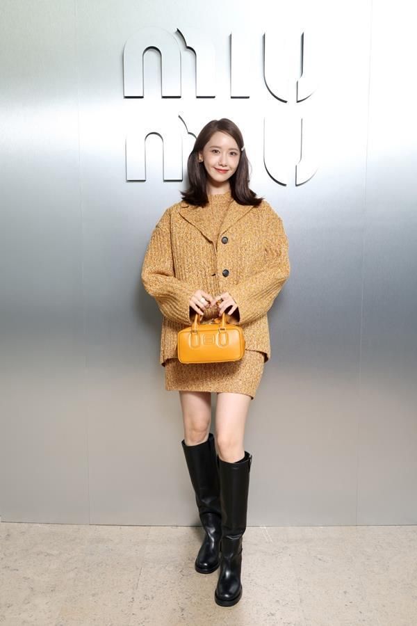 이날 윤아는 시나몬 컬러의 울 셋업 스타일링에 같은 컬러의 아르카디 백을 매치해 화사한 패션을 선보였다. 장원영은 부클레 소재의 트위드 셋업 스타일링에 미니 소프트 카프 백을 매치해 트렌디한 패션을 뽐냈다.