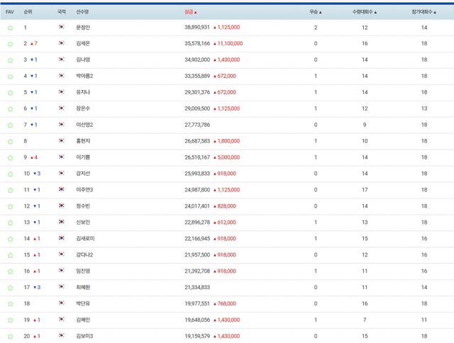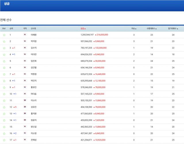 ■상금순위(제23회 하이트진로 챔피언십 종료 기준)