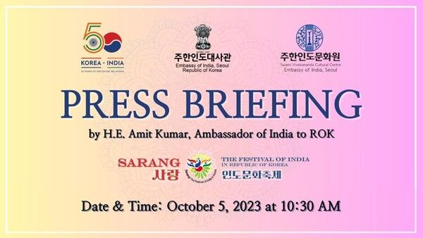 I warmly welcome you all to the Embassy for this briefing on the 9th edition of ‘SARANG – the Festival of India in Korea’, the flagship programme of the Embassy that seeks to promote people-to-people connectivity through cultural exchanges. The Festival is normally held in October-November in different parts of the Republic of Korea.