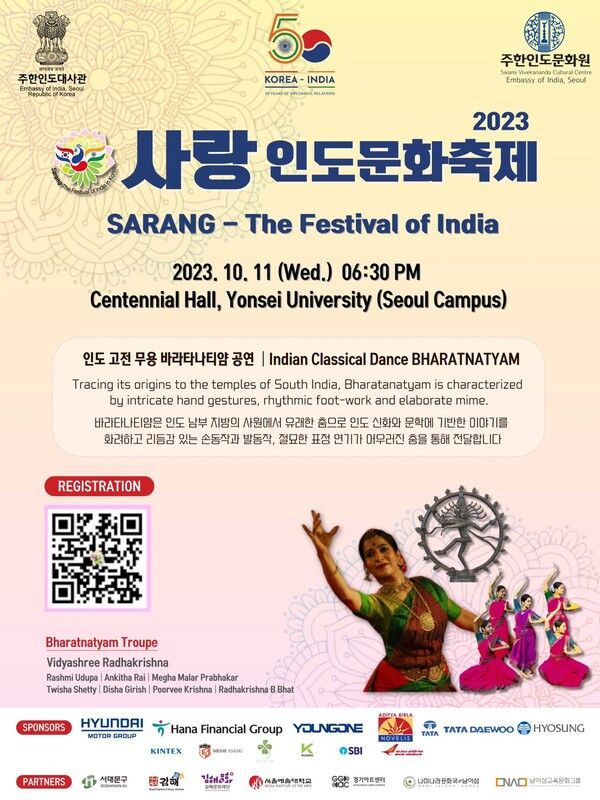 The word SARANG has a very meaningful connotation for both Koreans and Indians. SARANG in Korean means ‘love’ and for Indians it refers to ‘diversity representing different colours of India’. As a part of this festival, it is our endeavor to provide a glimpse of the rich cultural diversity of India through dance, drama, music, films and cuisine to the people of Korea, and promote understanding and friendship among the peoples of our two countries.