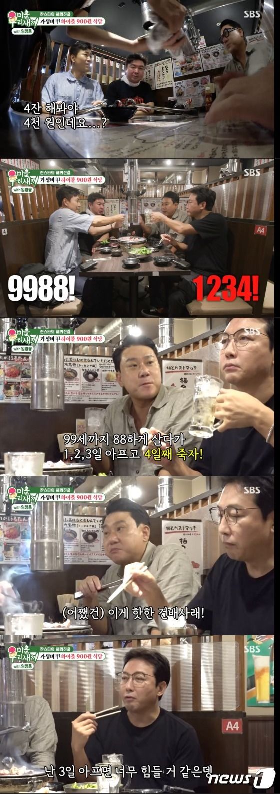 뉴스1에 따르면 8일 오후 방송된 SBS 예능 프로그램 '미운 우리 새끼'(이하 '미우새')에서는 아들들(김종민, 이상민, 탁재훈)이 임원희의 첫 해외공연을 응원하기 위해 함께 나고야를 방문했다.