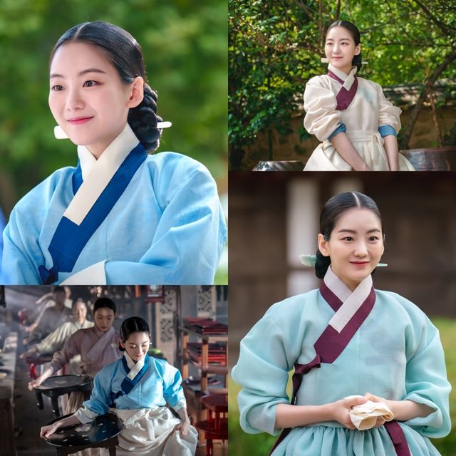 이와 관련 ‘혼례대첩’ 조이현이 본캐인 좌의정 댁 둘째 며느리 정순덕의 첫 자태를 선보여 시선을 강탈한다. 극 중 정순덕(조이현)이 초록 저고리와 보라색 치마 등 선명한 원색을 이뤘던 여주댁 복장과는 달리 옥색, 상아색, 하늘색 등 은은하고 따뜻한 색감의 저고리와 치마를 착장해 좌의정 둘째 며느리의 단아함을 자랑하는 장면.