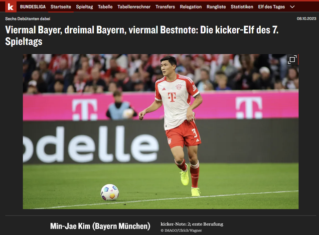 이에 독일 최고 권위를 자랑하는 키커도 뮌헨-프라이부르크전 직후 분데스리가 7라운드 베스트11에 올려놓았다.