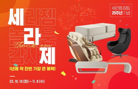 세라젬이 창립 25주년을 기념해 오는 10일부터 헬스케어 가전 구매 및 렌탈 고객에게 다채로운 혜택을 제공하는 '세라젬 놀라운 감사제'를 진행한다. © 세라젬