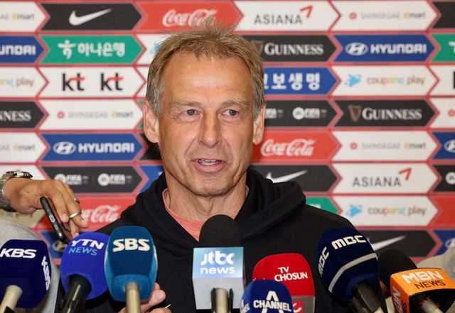 위르겐 클린스만 대한민국 축구 국가대표팀 감독이 지난달 14일 오후 인천국제공항 제2터미널을 통해 입국한 뒤 취재진과 인터뷰하고 있다. / 뉴스1