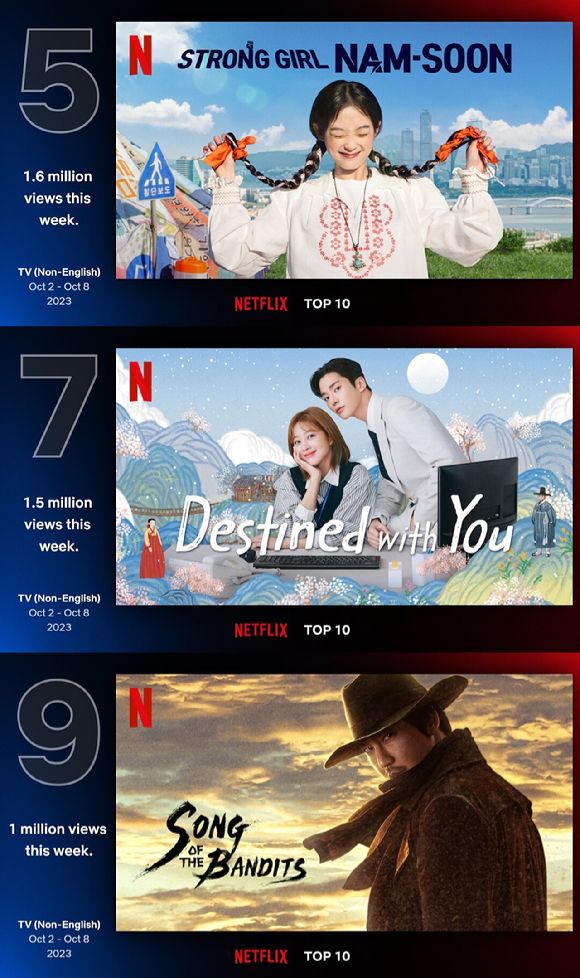 또 넷플릭스 TOP 10 공식 웹사이트에 따르면 '힘쎈여자 강남순'은 지난 7일부터 8일까지, 160만 뷰, 250만 시청 시간을 기록하며 넷플릭스 글로벌 TOP10 TV 부문(비영어) 5위를 기록했다.