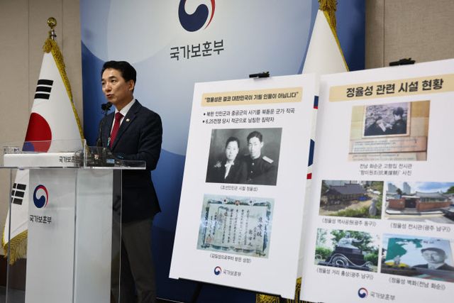 박민식 국가보훈부 장관이 11일 서울 용산구 서울지방보훈청에서 ‘정율성 기념사업 중단 권고’ 브리핑을 하고 있다. (사진=연합뉴스)