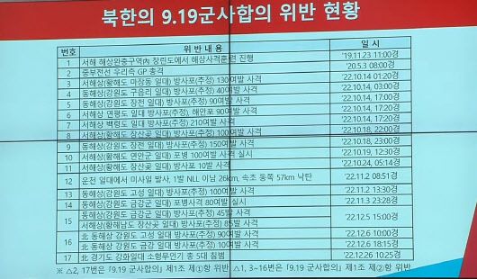 안철수 의원실이 공개한 북한의 9.19군사합의 위반현황(사진=국회방송)