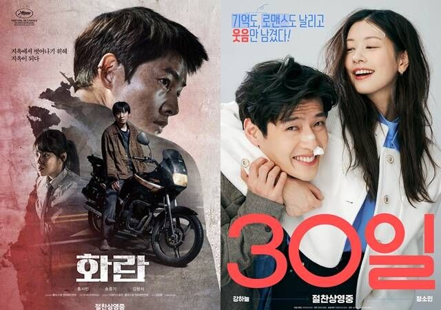 '30일'(왼쪽)은 9일 연속 박스오피스 1위를 차지했고, '화란'은 2위를 기록했다. /㈜마인드마크, 플러스엠엔터테인먼트