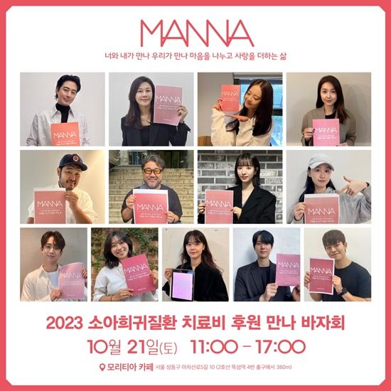 만나 관계자는 "소아희귀질환 치료비 후원을 위한 '만나 바자회'는 매년 많은 분들의 도움과 손길로 준비된다. 바쁘신 가운데 인증샷과 소장품을 정성껏 챙겨주시는 배우 분들, 그리고 소속사 관계자 분들, 또 곳곳에서 노력 봉사와 재능 기부로 함께 해 주시는 자원봉사자 분들께 진심으로 감사드린다. 작은 마음과 정성이 모여 아이들에게 사랑을 전할 수 있다는 것 자체가 기적이고 감사할 따름이다. 더 많은 아이들에게 사랑을 전할 수 있도록 앞으로도 많은 응원과 관심 부탁드린다"고 전했다.