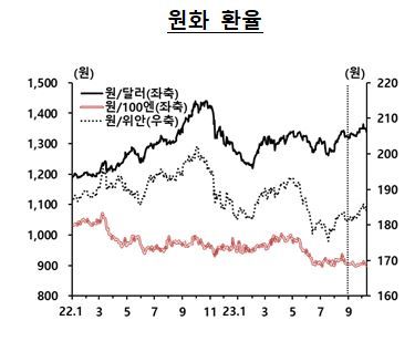 원·엔 환율은 8월 905.4원에서 9월 904.7원으로 하락한 뒤 지난 11일 899.0원까지 떨어졌다. 원·위안 환율은 8월 181.17원에서 9월 184.64원으로 올랐다가 지난 11일 183.58원으로 낮아졌다.