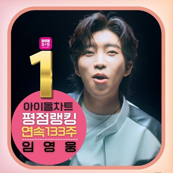 이 기간 집계된 평점 랭킹에서 44만4192표를 획득하며 임영웅은 아이돌 차트 평점 랭킹에서 133주 연속 1위에 오르게 됐다.