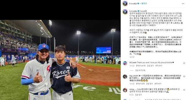 강백호도 곧장 화답했다. 그는 류즈롱의 메시지에 "Thank you and I love you my proud brother"(고맙고 사랑한다. 자랑스러운 내 형제)라고 댓글을 남겼다.