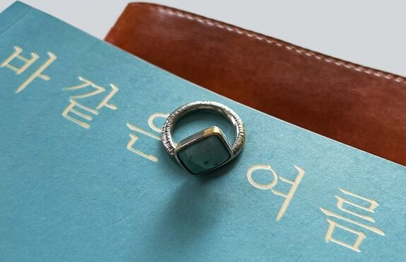 여행을 떠나기 며칠 전, 아버지 작업실에서 이 반지를 발견했습니다. 아버지 작업실은 저에게 보물 상자 같은 곳이죠. 반지를 처음 발견하자마자 저는 반지에 반해버렸고, 어슷한 사각형 모양의 신비로운 빛깔을 내는 터쿼이즈 보석에 마음을 빼앗겼습니다.