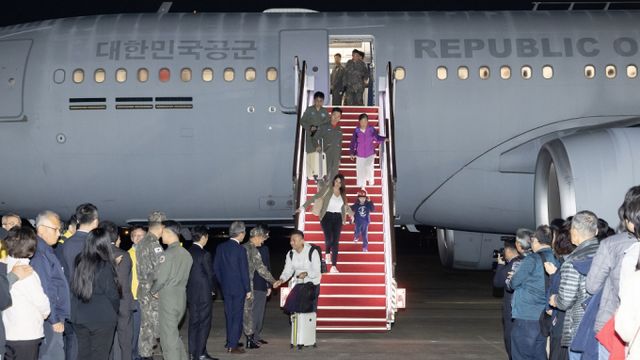 외교부는 지난 14일 밤 "이날 오후 10시45분 이스라엘에서 긴급 귀국하는 우리 국민들이 탑승한 군용기가 서울공항에 도착했다"고 밝혔다. 해당 군용기에는 우리 국민 등 총 220명이 탑승했다.