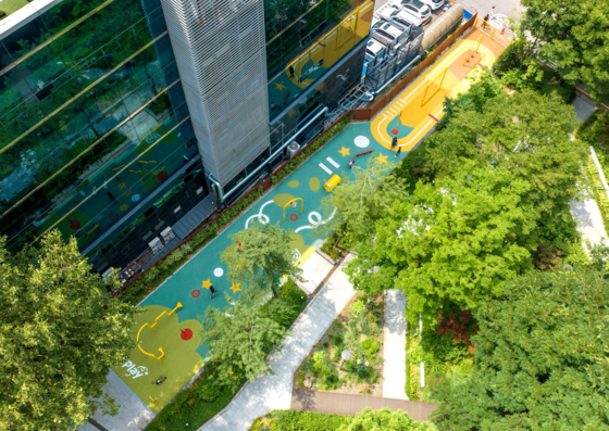 예스 키즈존은 기존 놀이터와는 달리 아이들이 게임형 미션을 수행하면서 다양한 신체활동을 즐길 수 있는 놀이시설로 개발됐다. ‘옐로우에픽’모바일 앱과 연동해5개의 나라를 탐험하는 스토리를 따라 신체활동 미션을 수행하면 리워드를 받을 수 있다.▲올록볼록 오르기,우주 중력 점프대,외다리 동굴,정글 외줄 타기 등7종의 시설물▲스토리에 몰입할 수 있게 상상력을 자극하는 알록달록한 바닥그래픽▲스토리 맵에 따라 놀이를 유도하는 사이니지100개 등을 구축했다.